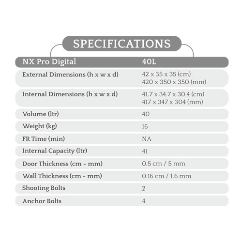 In today’s digital age, security too has kept pace. Godrej NX Pro Digital Home Locker designed for both, business and home use & provides strong security for your valuables. The digital lock protects valuables with a unique 4 to 6 digit password. To add, it also has a non-volatile memory that remembers the password even when the batteries are